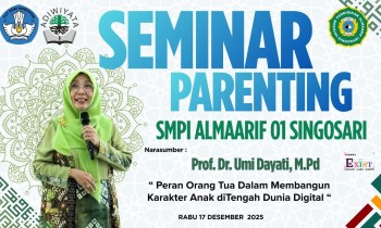 Singosari — SMPI Almaarif 01 Singosari menyelenggarakan kegiatan Parenting yang penuh makna bersama Prof. Dr. Umi Dayati pada Rabu, 17 Desember 2025, bertempat di Gedung Auditorium YPA Singosari ...